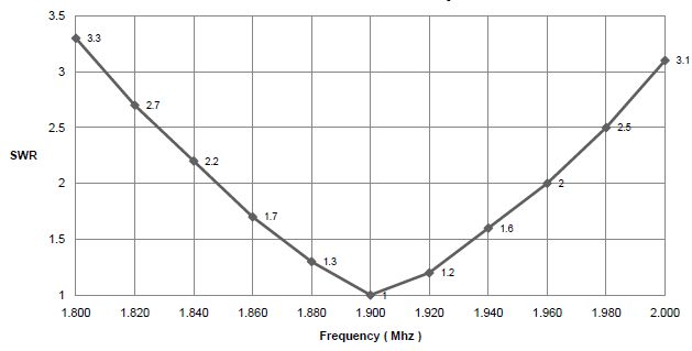 SWRの最低点の周波数は、ワイヤーの長さを長くすれば低い周波数になり、短くすれば高くなります。