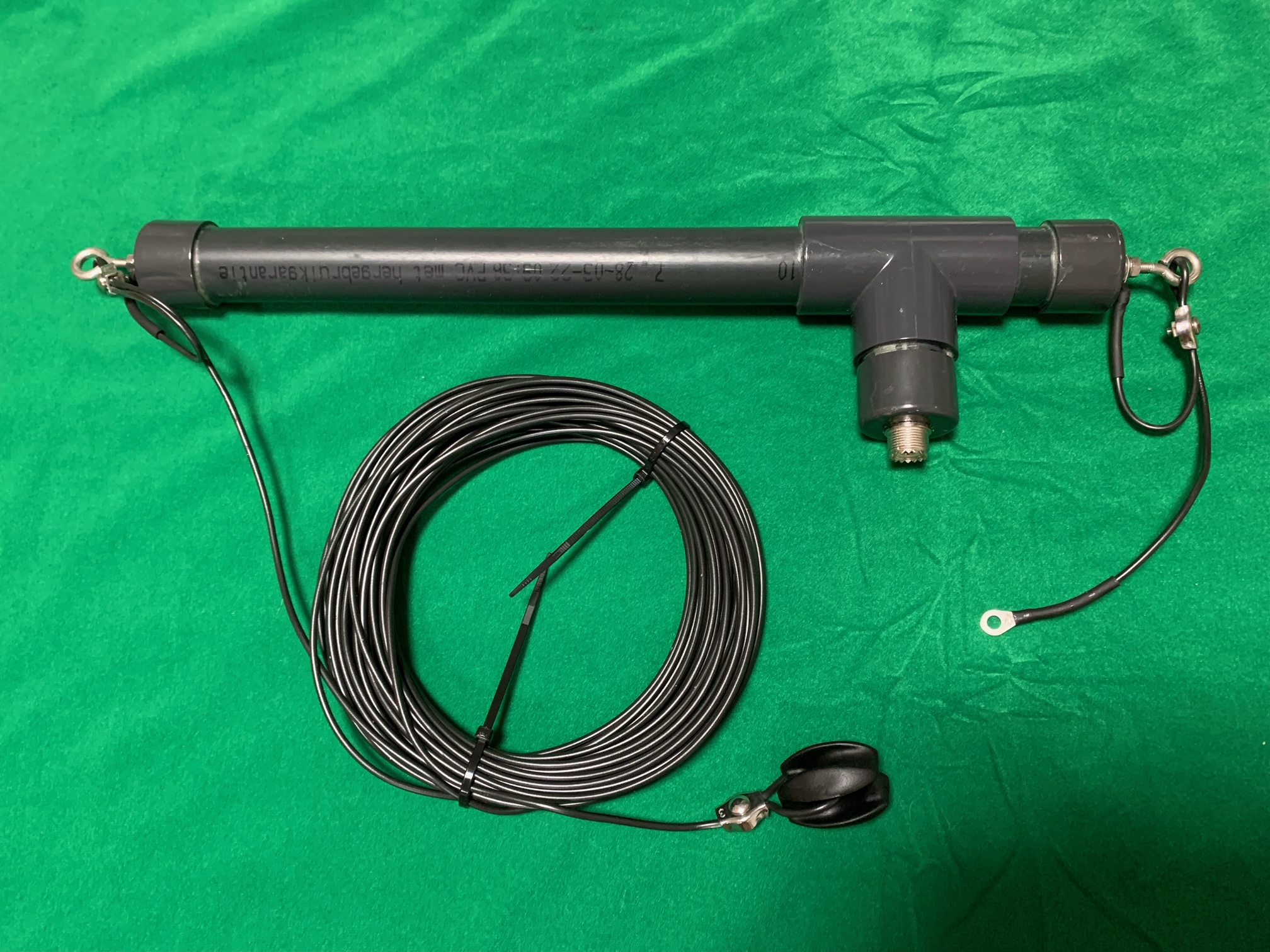 18mの鉄塔頂部に片方を設置し、45度下に引っ張りましたが、2m程折り返しました。SWR1.5最低で、エレメント長を触ってもこれ以下にはなりませんでした。