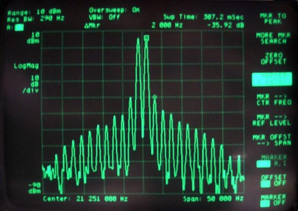 HF帯におけるスプリアス輻射は-60dB以下、50MHz帯における値は-65dB以下。ツートーン・テストによる第3次ヂストーション(歪)は36dB